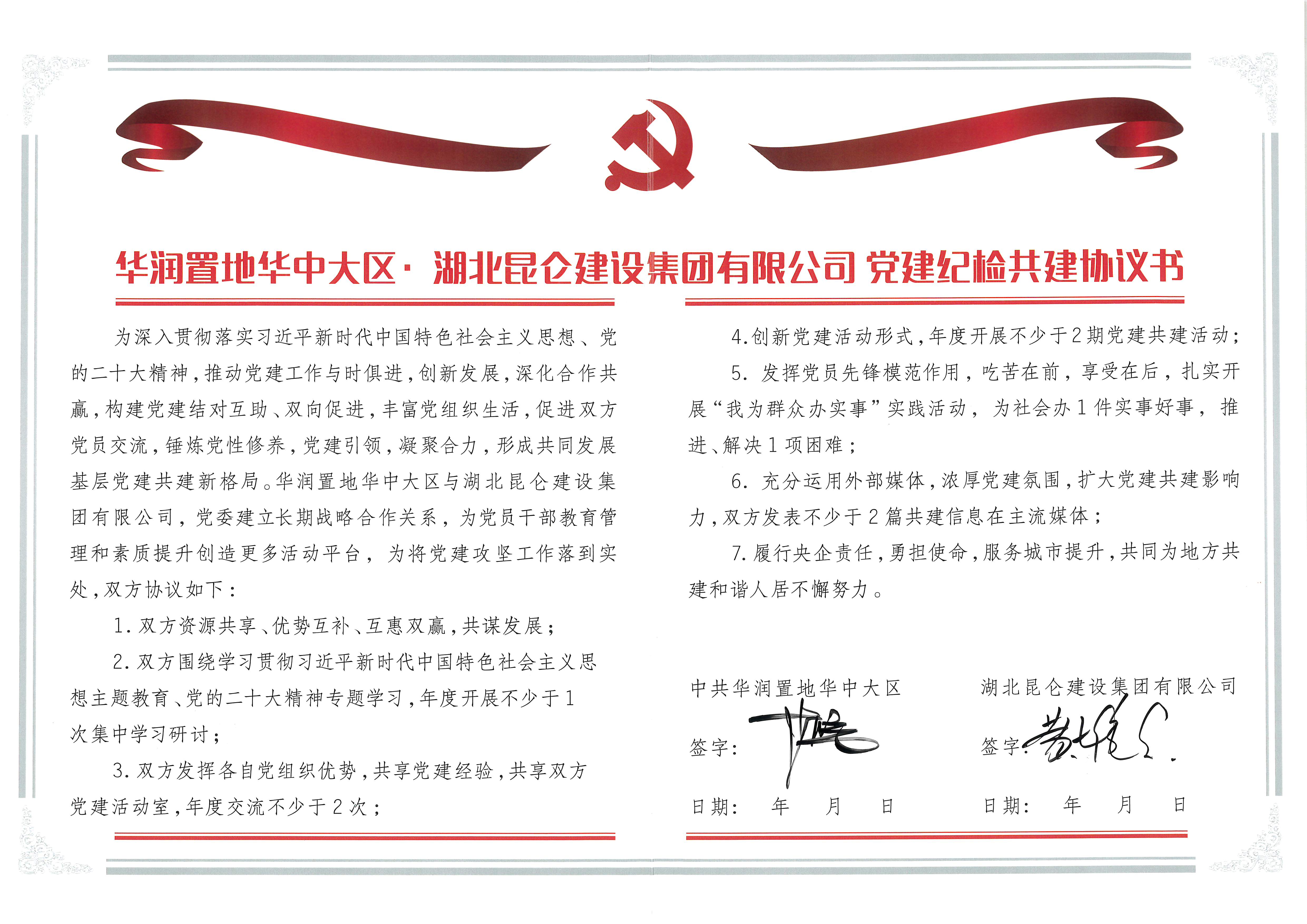 • 2023年簽署華潤置地華中大區(qū)黨建紀(jì)檢共建協(xié)議書