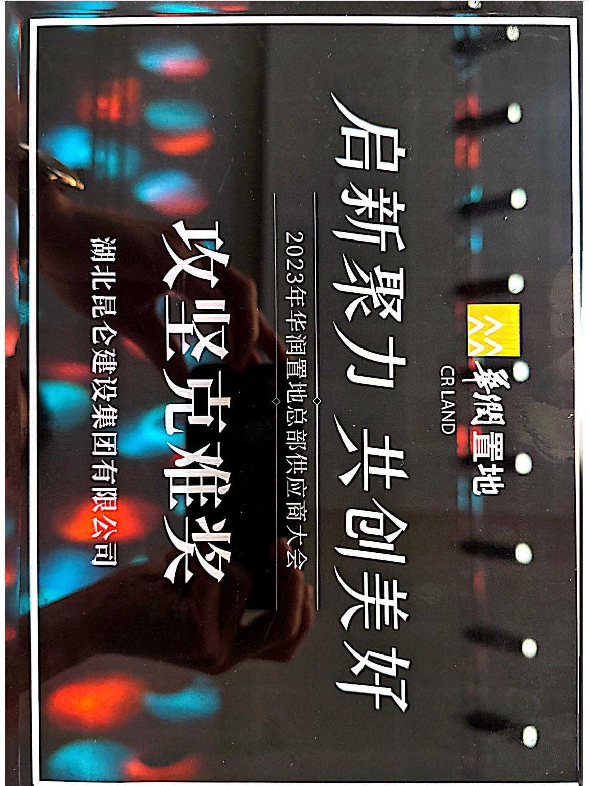 • 2023年5月榮獲華潤置地供應(yīng)商“攻艱克難獎”